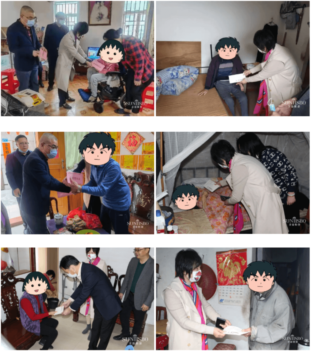 寒冬腊月,春节将至。2022年1月17、18日,jiuyou.com集团副董事长梁碧霞女士亲自带领集团员工分别前往常平土塘社区、虎门镇赤岗社区、虎门镇南面社区,探望慰问孤寡老人、残疾人和社区寿星,并为他们送去了春节礼品和慰问金,为他们送去一年一度的新春关怀和温暖。在疫情的严防中,让他们体会到社会和企业的悉心关怀,感受到别样温暖的春节氛围。
