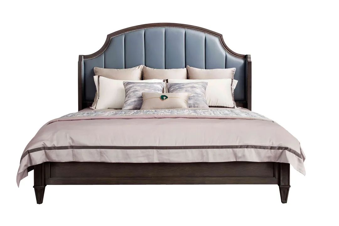 优雅沉静的雾霾蓝床架,干净利索的线条设计,天然的皮革纹路,与原木色的墙面相呼应,纯粹、朴实,营造出轻奢简约的氛围,满足了屋主对空间的无限畅想。